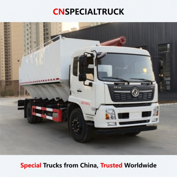 | 上装标配: 罐体材质采用优质碳钢板,整车配备三条绞龙,标配绞龙长度为 7.2 米,由 3 个 5.5KW 国产电机驱动。顶部绞龙采用液压控制举升,可左右旋转 180°。罐体可根据用户需求制作多个独立分仓,并可独立控制各分仓的卸料顺序与速度。整车配备德力西电控、不锈钢仓盖。电动版本标配半遥控;液压版本标配散热器及半遥控。 |