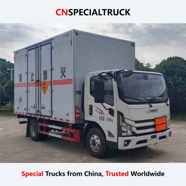 华通牌HCQ5099XQYJX6ZH型爆破器材运输车,采用江铃国六底盘打造,动力强劲、油耗经济、运行稳定。车辆符合国家危险品运输法规要求,厢体采用专用防爆结构,设有防静电、自动灭火、泄压、通风及限速等安全系统,用于运输有独立包装容器的爆破器材(1类危险品)。