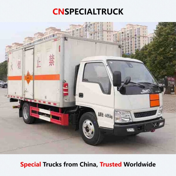 华通牌HCQ5042XQYJX6型爆破器材运输车,整车采用江铃国六底盘改装,车辆轻量化设计,承载能力强,厢体使用多层复合阻燃材料制造,具备防火、防静电、防爆等安全防护性能。整车符合国家危险品运输法规要求,适用于矿山、工程、炸药库等爆破器材安全运输场景。