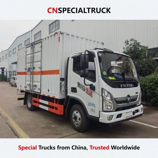 上装配置: 易燃气体厢式运输车,货箱采用Q235碳钢、铝合金与聚氨酯阻燃泡沫;可选装驾驶室、侧门、百叶窗、瓦楞板结构及起重尾板,配备ABS系统、卫星定位行驶记录仪、备胎、随车工具、灭火器